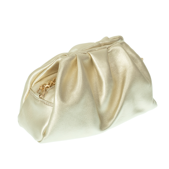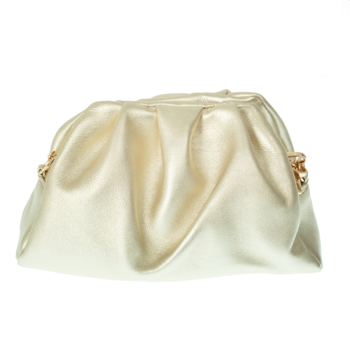 Βραδινή τσάντα χειρός με εξωτερική αλυσίδα για χιαστή. Κατασκευάζεται σε λεία δέρματα, μεταλλικά , καστόρια και λουστρίνια.
